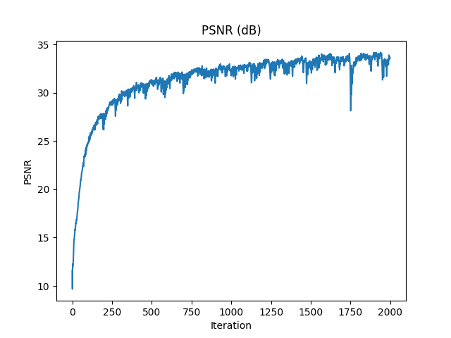 Where SE is the sinusoidal positional encoding given by \[PE(x) = \{x, sin(2^0\pi x), cos(2^0\pi x), sin(2^1\pi x), cos(2^1\pi x), ..., sin(2^{L-1}\pi x), cos(2^{L-1}\pi x)\}\] Because we expose hyperparameters, we can use any arbitrary hidden layer width and L. For my purpose, I used 4 layers with a hidden layer width of 256 (and 32 later) and L=10 (and 5 later). I trained using Adam with a learning rate of 0.01 and used mean squared error as the loss function.