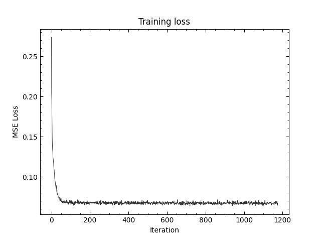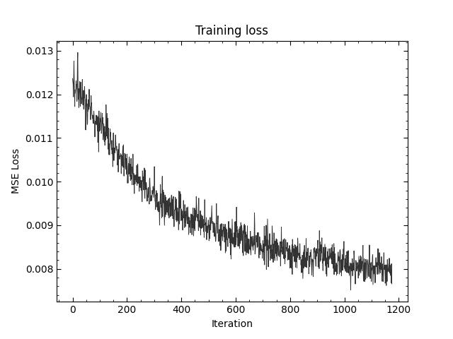 Using the MNIST dataset, we create a dataloader using torch. Using a batch size of 256, 5 epochs, hidden dimension 128, MSE as the loss function and the Adam optimizer with a learning rate of 1e-4, we trained the model.
